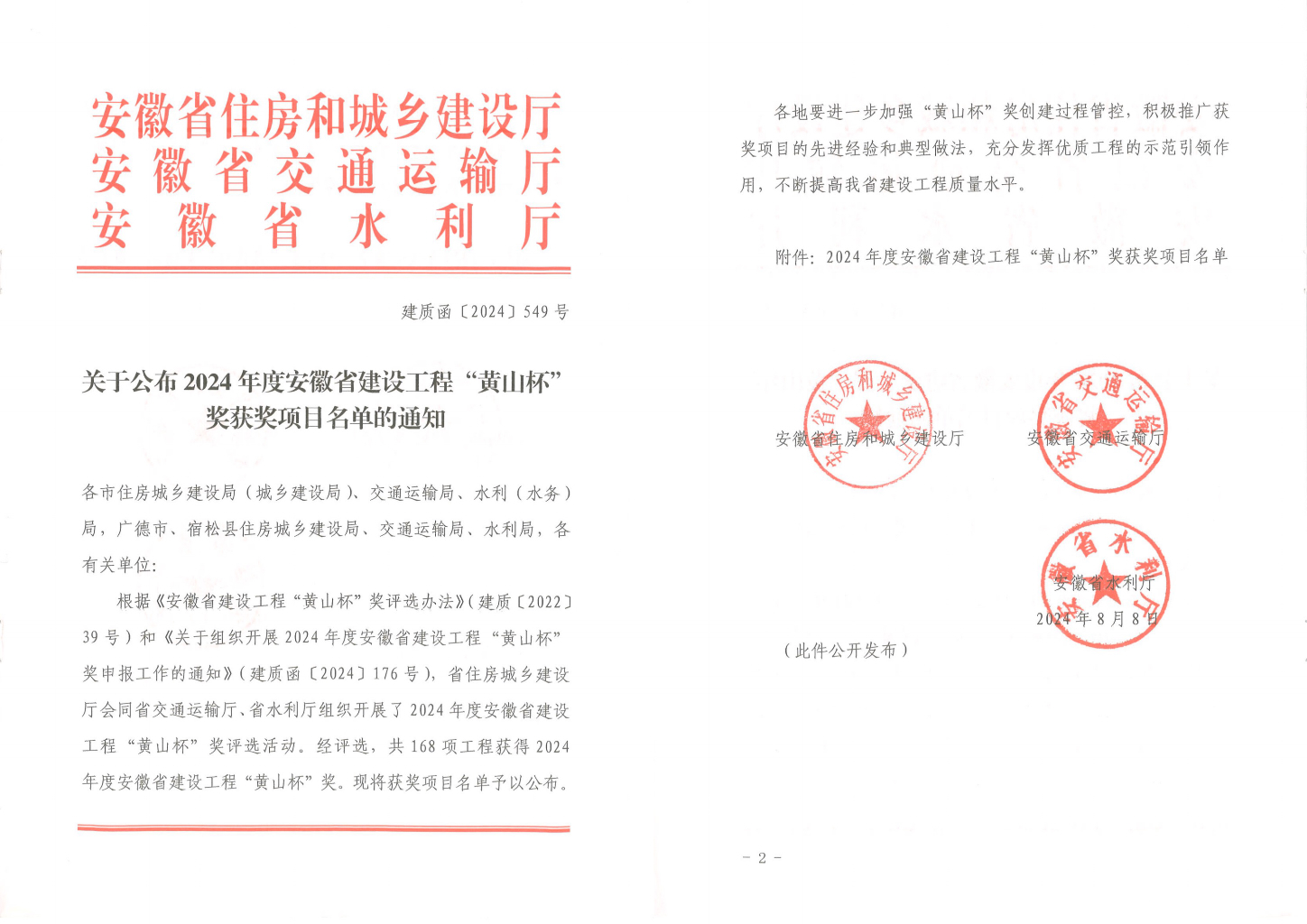 時間:2024-08-27近日,安徽省住房和城鄉建設廳公布了2024年度安徽省建設工程“黃山杯”獲獎名單,安徽池州排水有限公司所承建的“天堂湖污水處理廠工程”位列其中。獲獎項目簡介......